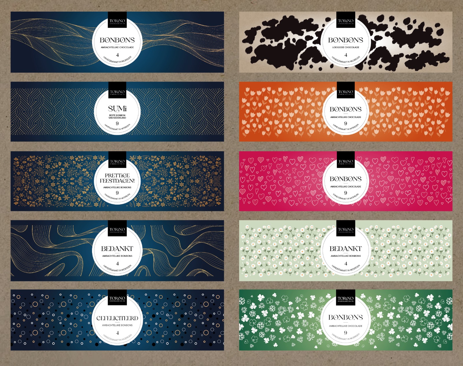 Met bonbons doe je het eigenlijk altijd goed, en is een échte verwennerij. We bieden doosjes aan van 4, 9 en 16 stuks, met een speciaal ontworpen wikkel. Je kunt kiezen uit verschillende bonbons, designs, en natuurlijk prijkt jouw logo op de voorkant! Allergieën? Geef het door. Andere wensen? Altijd bespreekbaar.